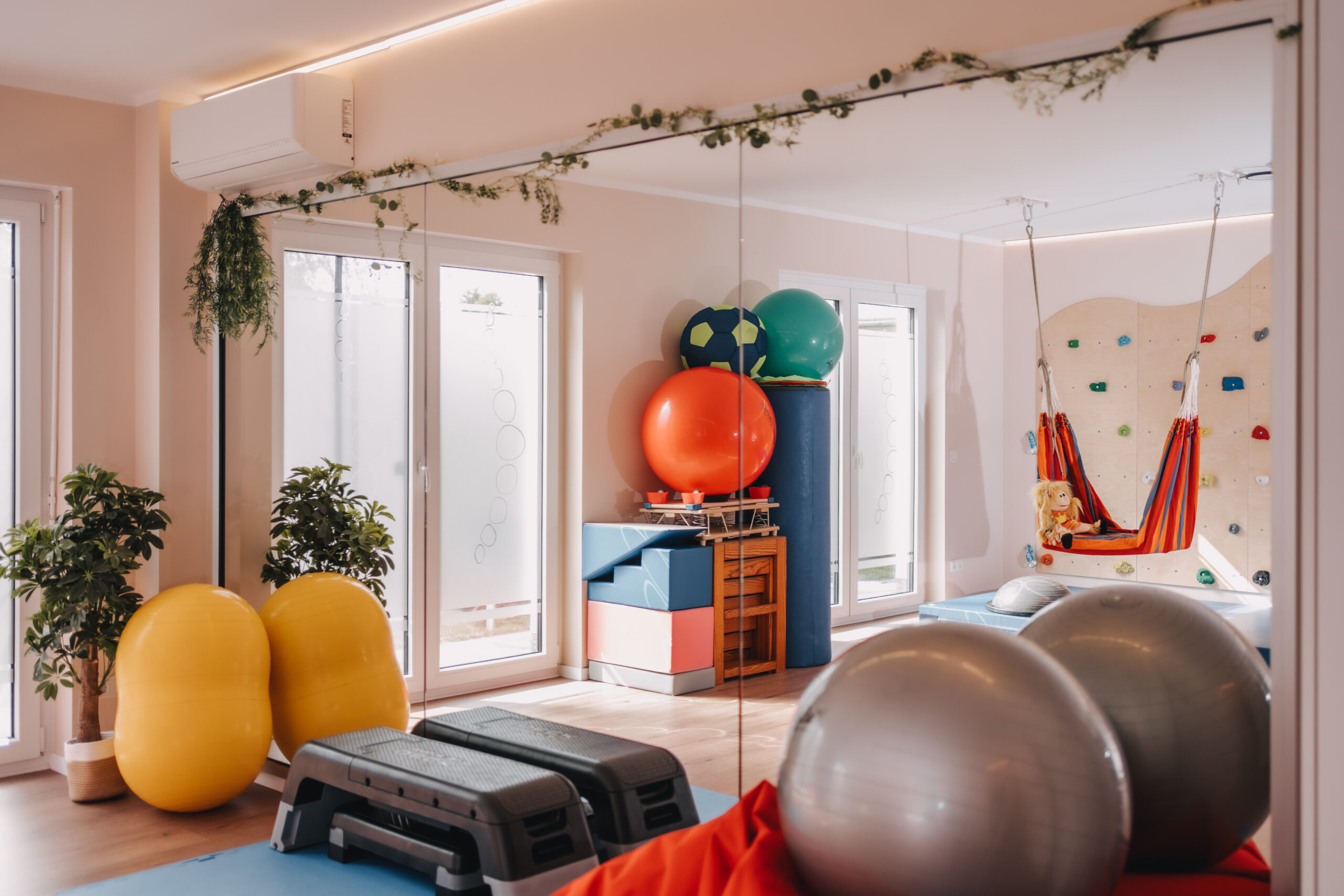 An unserer kleinen Indoor-Kletterwand bieten wir therapeutisches Klettern für fast alle Diagnosen aus der Neurologie und Orthopädie. Das therapeutische Klettern ist eine wertvolle und interessante Ergänzung und Erweiterung zur üblichen physiotherapeutischen Behandlung. Koordination, Kraft, Dehnung, Raumkontrolle, Konzentration und Körperwahrnehmung werden geschult. Sie werden aktiv eingebunden und von uns angeleitet. Ein abwechslungsreiches und zielgerichtetes Training einzelner Muskelgruppen oder des gesamten Bewegungsapparates.